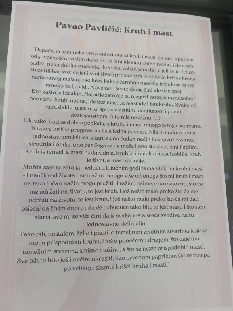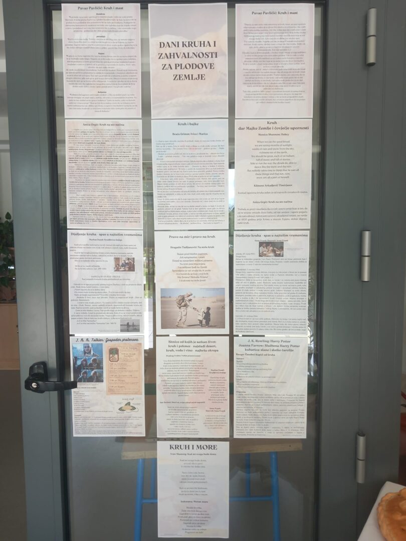 Dane kruha i zahvalnosti za plodove zemlje obilježili su naši pekari izradom kruha i peciva pod vodstvom profesorice Vlatke Palatinuš i stručnog učitelja Zorana Šketa. Školska knjižničarka postavila je izložbu tekstova o kruhu i zahvalnosti za hranu koju konzumiramo svakodnevno, a često ju uzimamo zdravo za gotovo.