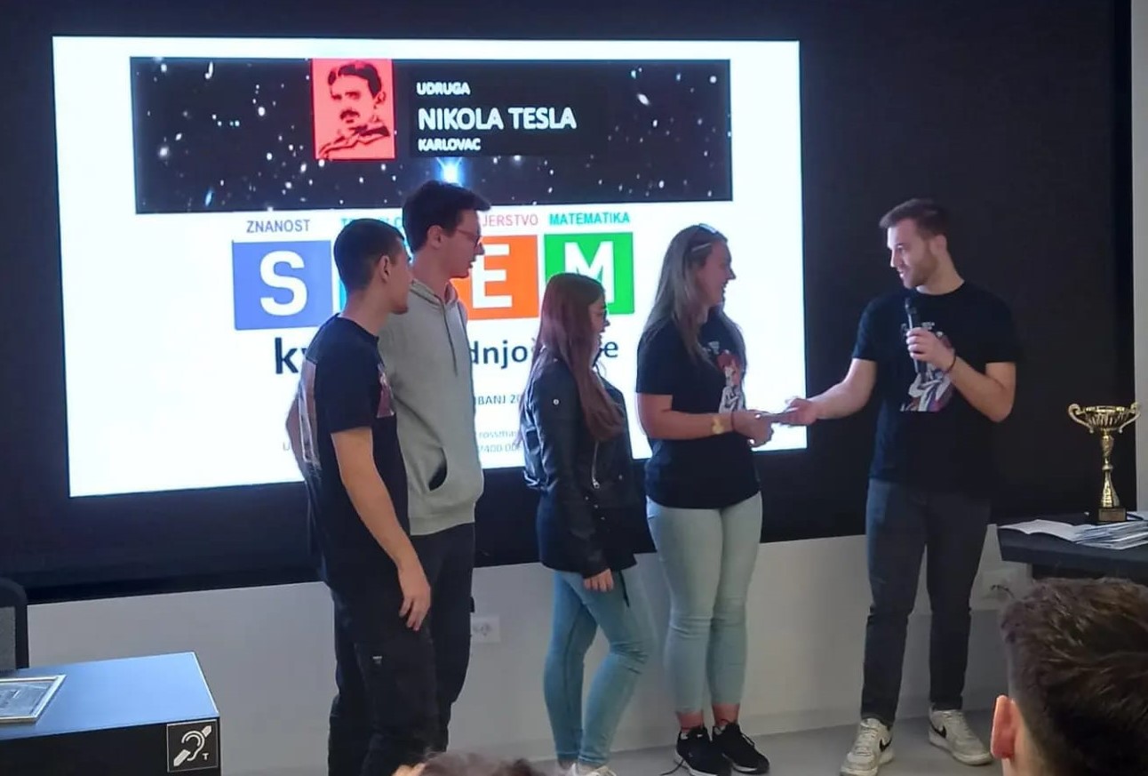 Sudjelovalo je tri ekipe naše škole u kategoriji Teslini generatori, ekipa s 4 sata nastave matematike tjedno u sastavu učenika iz 1. g razreda: Monike Matišković, Sare Lukine, Luke Markovića-Mikoča i Noe Galovića pod mentorstvom prof. Višnje Petrović osvojila je odlično *drugo* mjesto, ekipa s dva sata nastave matematike tjedno u sastavu učenika 1. c, 1. d i 2. e razreda Lovre Burića, Davida Ristevskog, Josipe Jukić i Tee Matijević pod mentorstvom profesorica Višnje Petrović i Merime Arnaut osvojila je četvrto mjesto. Na natjecanju su sudjelovale i učenice 1. e razreda Lucija Pavlović, Nika Vratarić i Ana Franjković.