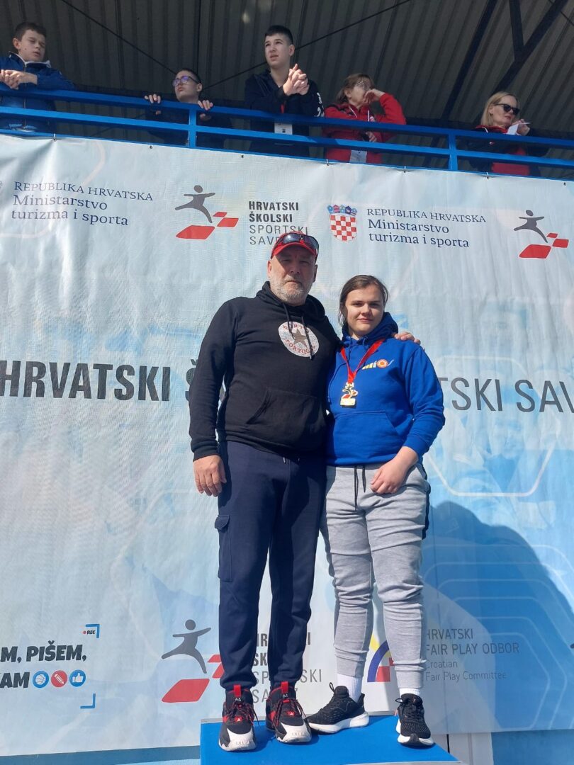 Naša Maja Mikek, 2. F, pod mentorstvom prof. Samardžije postala je državna prvakinja u bacanju kugle za učenike sa IT. Između 14 srednjoškolki ostvarila je pobjednički hitac – 7,89 m!