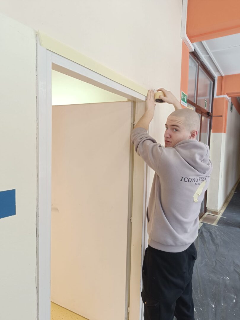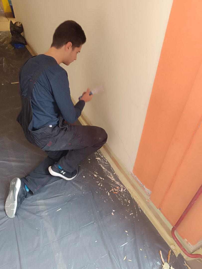 Članovi Učeničke zadruge “MIOŠ” uređuju prostor Šumarske i drvodjeljske škole Karlovac.